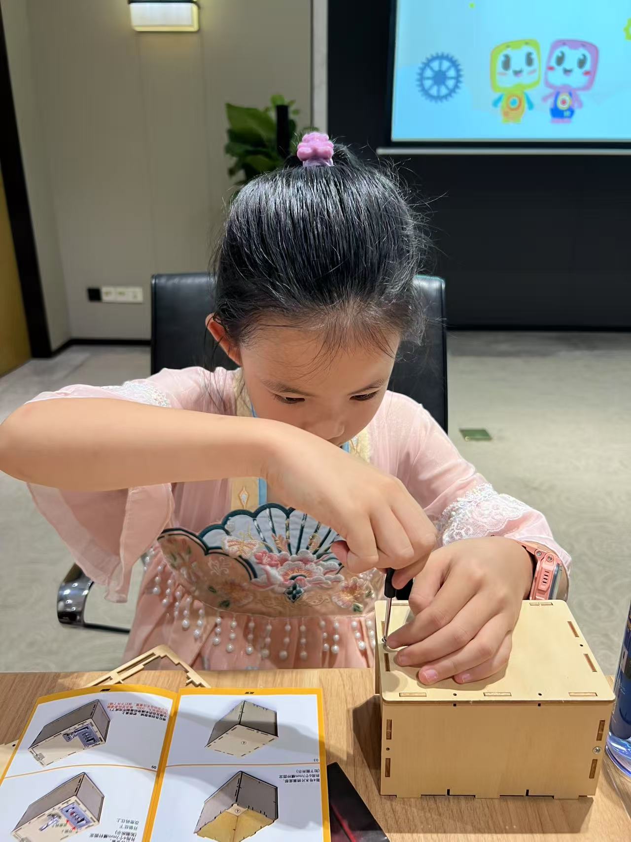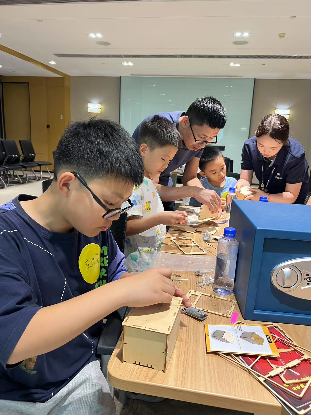 “职场探索 N 次方” 环节中,通过趣味互动与案例分享,孩子们对各类职业有了更生动的认知,未来职业规划的种子悄然萌芽。最令人期待的当属创客空间的机械密码保险箱 DIY,孩子们专注地组装零件、调试密码,在动手实践中锻炼逻辑思维与精细操作能力,当自己制作的保险箱成功锁闭并开启时,成就感溢于言表。